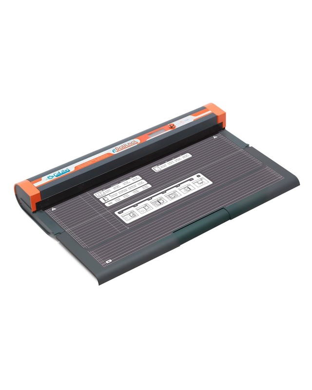 Máquina automática para forrar cualquier tipo de libro. Realiza fundas que se ajustan como una segunda piel a cualquier tamaño. Con un moderno control electrónico y sensores controlados digitalmente. Controla la temperatura, el tiempo y la presión para soldar y cortar a la perfección. Posee un display animado que dice en todo momento lo que hay hacer y qué está haciendo ella. Se debe utilizar exclusivamente con el material marca CoLibrì. Máxima velocidad de corte: 2,5 segundos. Longitud máxima de soldadura: 500 mm. Medidas: 560 x 90 x 410 mm. Peso: 5 kg.