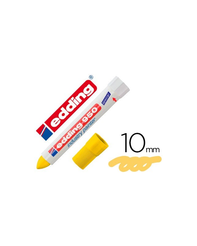 Rotulador superpermanente con punta redonda ancha ideal para escritura grande y gruesa. Escribe en todo tipo de superficies, sean ásperas o sucias. Cuenta con una pasta permanente de excelente opacidad que resiste a la luz y al agua una vez seca. Trazo de 10 mm. Color amarillo.