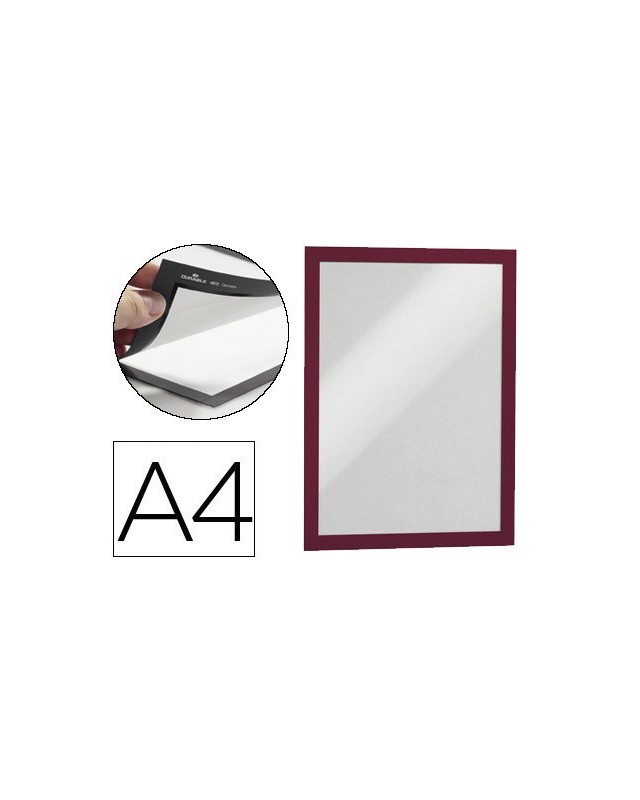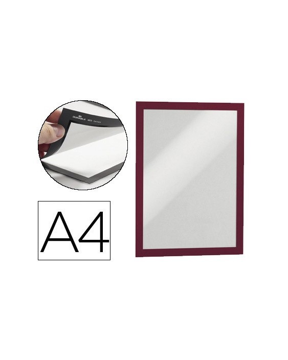 Marco porta anuncios durable magnetico din a4 dorso adhesivo removible color rojo pack de 2 unidades
