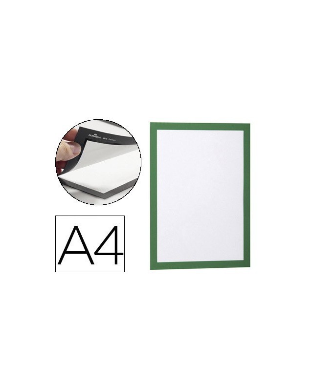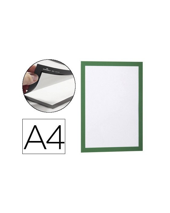Marco porta anuncios durable magnetico din a4 dorso adhesivo removible color verde pack de 2 unidades