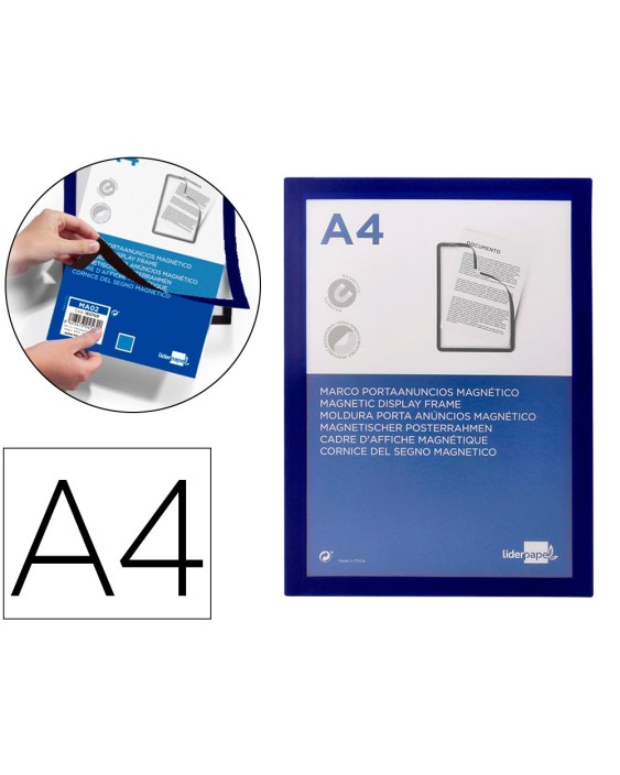 Marco porta anuncios liderpapel magnetico din a4 dorso adhesivo removible color azul