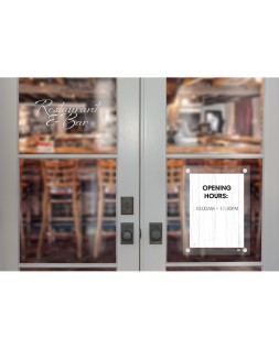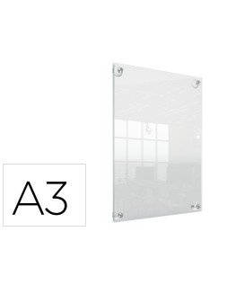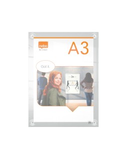 Este porta póster acrílico montable y fácil de mover, con un moderno diseño sin marco, proporciona una sensación elegante y contemporánea. Gracias asu montaje con ventosas, el porta póster se adhiere a cualquier superfici e no porosa en formato vertical u horizontal y ofrece un cambio de contenido rápido y sencillo. La superficie transparente se puede limpiar fácilmente, lo que convierte a este soporte en la solución ideal para la exposición de carteles, documentos o información temporal y permanente. Tamaño de la superficie de exposición A3.