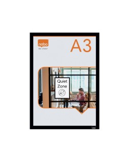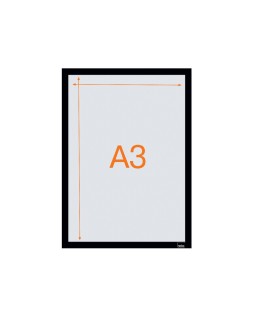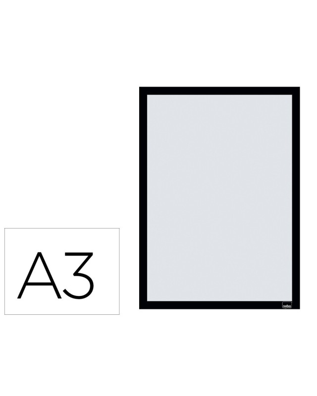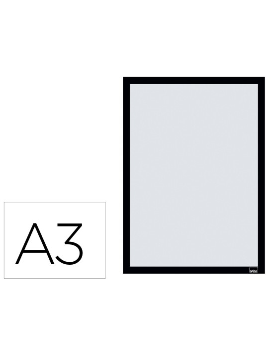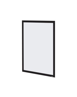 Marco magnético autoadhesivo para la exposición segura de carteles, señales e información. El marco cuenta con una banda magnética en la parte inferior del marco que permite cambiar el contenido de forma rápida y sencilla y mantener las páginas seguras. Este marco magnético se fija firmemente a superficies planas en formato vertical u horizontal gracias a su base autoadhesiva, y la tapa mate transparente ayuda a proteger el contenido que hay debajo y se puede limpiar con un paño. Área de exposición A3. Pack de 2 marcos informativos de color negro.