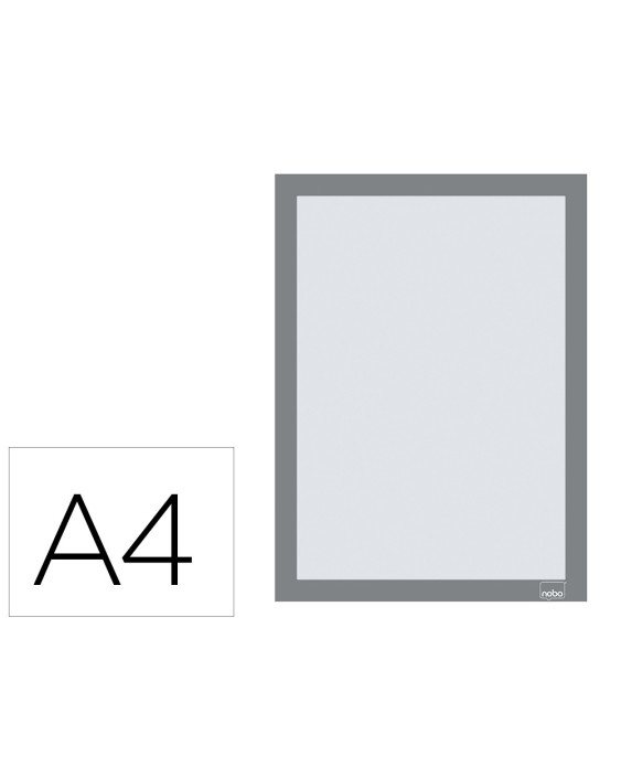 Marco magnético autoadhesivo para la exposición segura de carteles, señales e información. El marco cuenta con una banda magnética en la parte inferior del marco que permite cambiar el contenido de forma rápida y sencilla y mantener las páginas seguras. Este marco magnético se fija firmemente a superficies planas en formato vertical u horizontal gracias a su base autoadhesiva, y la tapa mate transparente ayuda a proteger el contenido que hay debajo y se puede limpiar con un paño. Área de exposición A4. Pack de 2 marcos informativos de color plata.