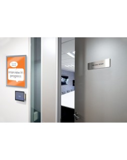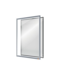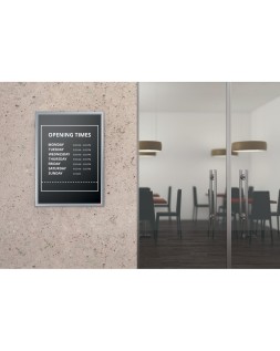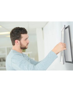 Este porta pósters montado en la pared tiene un elegante marco de clip de perfil bajo, esquinas biseladas sin fisuras y un mecanismo de cambio de contenido realmente innovador. Sólo tienes que retirar el marco de la pantalla frontal, cambiar el contenido detrás de la cubierta transparente y volver a colocar el marco de la pantalla con una simple conexión \"push click fit\". Esta solución de señalización estable y segura cuenta con un panel trasero que se fija firmemente a la pared mediante un montaje en esquina, loque permite sustituir el contenido sin necesidad de retirar el marco de l a pared. El innovador diseño mejora una solución de producto tradicional haciendo que la sustitución de los documentos sea un proceso rápido y sencincillo. Tamaño de la superficie de exposició