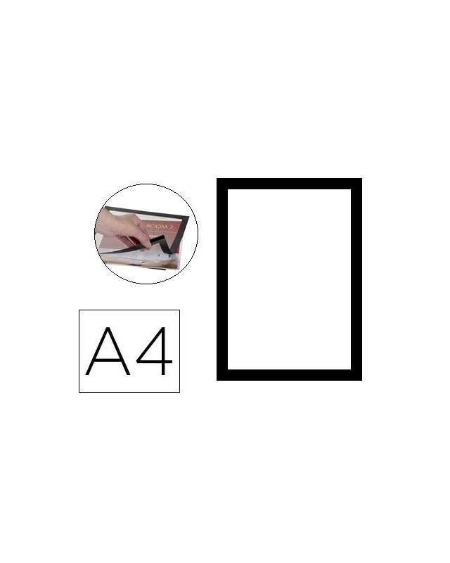 Marco porta anuncios q-connect magneto din a4 dorso adhesivo removible color negro pack de 2 unidades