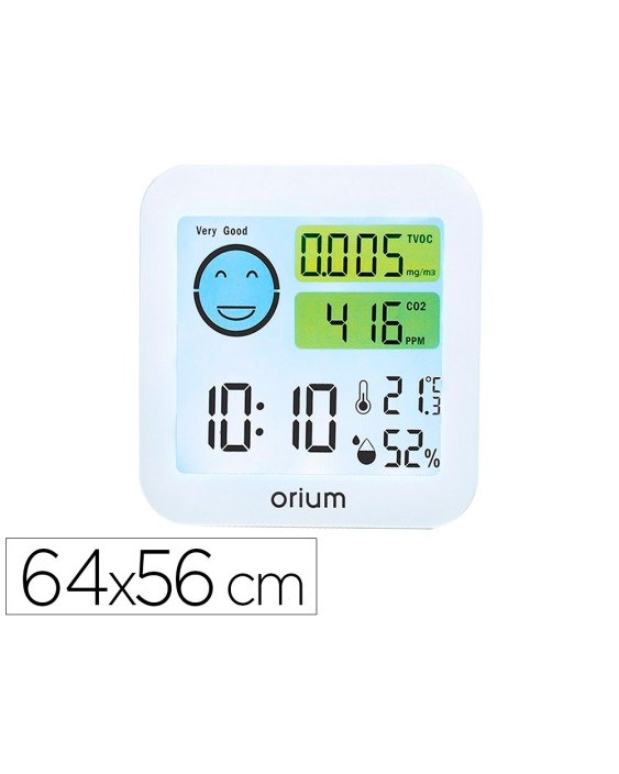 Fabricado en abs, blanco, display de valores de CO , humedad, temperatura y tiempo. Pantalla lcd con emoticonos que muestran cuando los valores de CO son buenos o demasiado altos. Una correcta ventilación reduce el riesgo de infección por virus corona u otros virus y bacterias que pueden propagarse a través de aerosoles. Fuente de alimentación: adaptador de CA o 2 pilas AA (no incluidas). Medidas: 80 x 80 x 25 mm. Peso: 100 g.