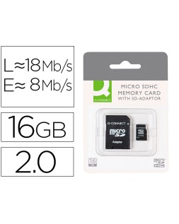 Memoria sd micro q-connect flash 16 gb clase 6 con adaptador