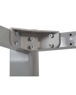 SUPERFICIE DE MESA: melamínico sobre aglomerado de 25 mm de grosor con cantos de PVC de 2 mm. Acabados en haya, gris y blanco. Superficies de cantos rectos. ESTRUCTURA: con sistema de regulación independiente (50 mm) fabricada en tubo de acero de 60 x 60 x 1,5 mm. Sistema de anclaje en fundición de aluminio. Travesaños tubulares de acero con nuevas medidas reducidas de 40 x 30 mm para una máxima comodidad.