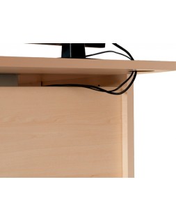 SUPERFICIE DE MESA: melamínico sobre aglomerado de 25 mm de grosor con cantos de PVC de 2 mm. Superficies con cantos rectos. ESTRUCTURA: melamínica con sistema de regulación independiente (20 mm), melamínico sobre aglomerado de 25 mm de grosor con cantos de PVC de 2 mm de grosor. Estructura con cantos redondeados.
