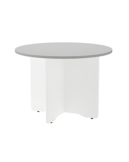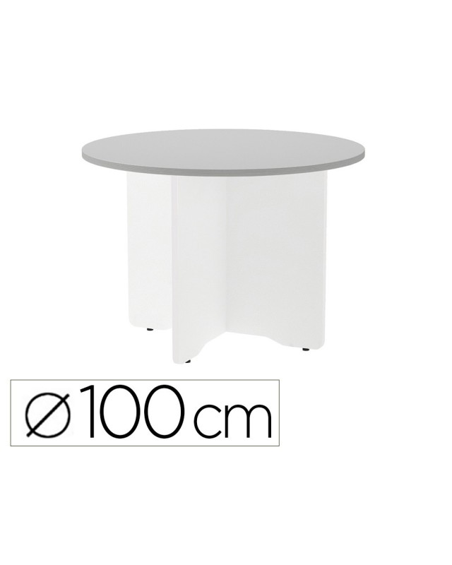 Mesa de reunion rocada redonda 3005aw02 estructura madera en aspas color blanco tablero gris 100cm diametro