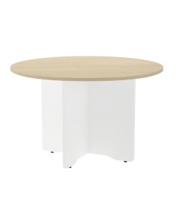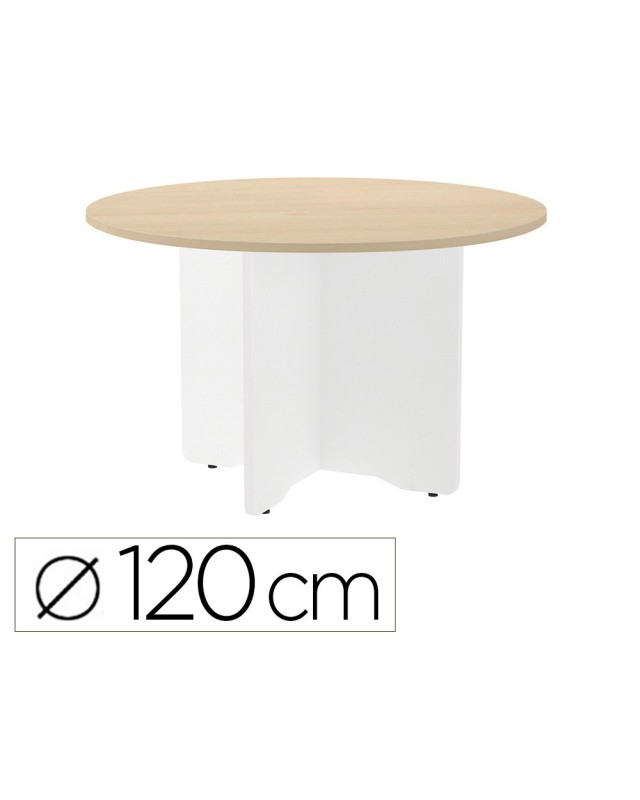 Mesa de reunion rocada redonda 3006aw01 estructura madera en aspas color blanco tablero haya 120cm diametro