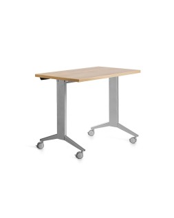 La mesa Rotation permite abatir la superficie de la mesa para facilitar unapilamiento más cómodo y funcional mediante un sencillo sistema de fácil manejo para conseguir en cada momento el uso más adecuado. Movilidad y flexibilidad perfectas que se unen para conseguir una adaptación total. Estructura en plancha de acero plegada y estampada con acabado pintado epoxy color gris. Sistema de rotación metálico con sistema de muelle para una fácil activación mediante 2 asas de polímero técnico. Viga transversal de acero. Faldón metálico con sistema de plegado opcional. El tablero es de melamina de 25 mm de grosor y canteado en PVC de 2 mm. Faldón opcional ref. 2935FD no incluido.