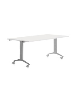 La mesa Rotation permite abatir la superficie de la mesa para facilitar unapilamiento más cómodo y funcional mediante un sencillo sistema de fácil manejo para conseguir en cada momento el uso más adecuado. Movilidad y flexibilidad perfectas que se unen para conseguir una adaptación total. Estructura en plancha de acero plegada y estampada con acabado pintado epoxy color gris. Sistema de rotación metálico con sistema de muelle para una fácil activación mediante 2 asas de polímero técnico. Viga transversal de acero. Faldón metálico con sistema de plegado opcional. El tablero es de melamina de 25 mm de grosor y canteado en PVC de 2 mm. Faldón opcional ref. 2937FD no incluido.