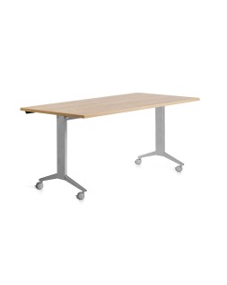 La mesa Rotation permite abatir la superficie de la mesa para facilitar unapilamiento más cómodo y funcional mediante un sencillo sistema de fácil manejo para conseguir en cada momento el uso más adecuado. Movilidad y flexibilidad perfectas que se unen para conseguir una adaptación total. Estructura en plancha de acero plegada y estampada con acabado pintado epoxy color gris. Sistema de rotación metálico con sistema de muelle para una fácil activación mediante 2 asas de polímero técnico. Viga transversal de acero. Faldón metálico con sistema de plegado opcional. El tablero es de melamina de 25 mm de grosor y canteado en PVC de 2 mm. Faldón opcional ref. 2937FD no incluido.