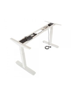 Mesa rocada regulable en altura electricamente hasta 129 cm estructura de acero tablero 180 cm color blanco