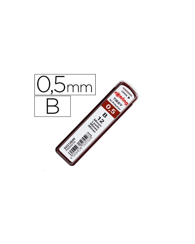 Minas rotring grafito 0,5 mm b estuche de 12 minas