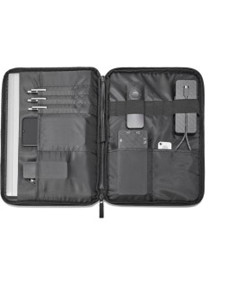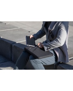 Estilo sostenible. Lleva tu ordenador portátil a la moda, protégelo y siente confianza, todo a la vez. La funda para el ordenador portátil Renew Business de 14,1 pulgadas está confeccionada principalmente con un material hecho a partir 100% de plásticos recuperados del océano, mientras que todas las etiquetas, cuerdas y rellenos provienen de materiales biodegradables 100% reciclados. Fácil y segura. Pónselo difícil a los ladrones de manos largas y a los carteristas electrónicos. Un bolsillo RFID protege tus tarjetas de crédito y datos de los escáneres, mientras que las cremalleras con cierre de doble cadena y los bolsillos interiores mantienen tus posesiones a buen recaudo y seguras. Además, hay un bolsillo de rastreador Bluetoothoth para albergar el dispositivo de rastreo qu