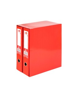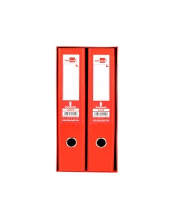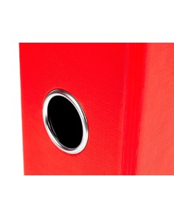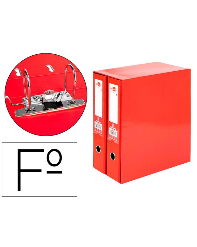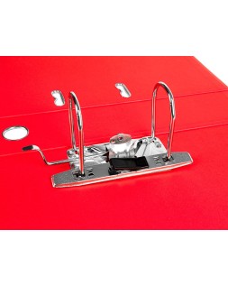 Fabricado en cartón entrecolado de 1,90 mm de espesor forrado con papel de encuadernación plastificado y gofrado con tela de PVC. Mecanismo de palanca de 75 mm con compresor metálico, cantoneras largas, ollao y tarjetero en el lomo con Rado®. Tamaño folio. Medidas exteriores del módulo: 184 mm ancho x 350 mm alto x 290 mm fondo. Ancho de lomo: 75 mm. Medidas: 280 x 345 mm.