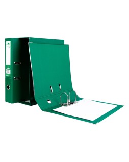 Fabricado en cartón entrecolado de 1,90 mm de espesor forrado con papel de encuadernación plastificado y gofrado con tela de PVC. Mecanismo de palanca de 75 mm con compresor metálico, cantoneras largas, ollao y tarjetero en el lomo con Rado®. Tamaño folio. Medidas exteriores del módulo: 184 mm ancho x 350 mm alto x 290 mm fondo. Ancho de lomo: 75 mm. Medidas: 280 x 345 mm.