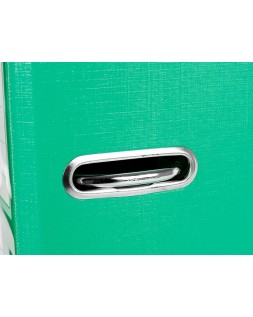 FABRICADO EN CARTÓN ENTRECOLADO DE 1,90 MM DE ESPESOR FORRADO CON PAPEL DE ENCUADERNACIÓN PLASTIFICADO Y GOFRADO CON TELA DE PVC.MECANISMO DE PALANCA DE 52MM CON COMPRESOR DE PLÁSTICO, CANTONERAS LARGAS, OLLAO Y TARJETERO EN EL LOMO. TAMAÑO FOLIO. MEDIDAS EXTERIORES DEL MÓDULO: 184 MM ANCHO X 350 MM ALTO X 290 MM FONDO. ANCHO DE LOMO: 60 MM. COLOR PASTEL, IDEAL PARA DAR UN TOQUE DE COLOR ACTUAL.