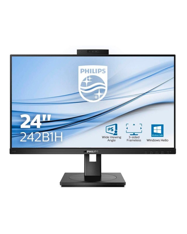 La tecnología sin parpadeo y Low Blue garantizan una reducción de la fatiga ocular y al mismo tiempo un aumento de la comodidad visual. La sincronización de imagen adaptativa permite imágenes sin rayas.Panel IPS, Full HD, pantalla mate, 150 mm de altura, función pivotante (giratorio), altavoz, VESA 100 x 100, pie extraíble, marco fino de tres lados, tiempo de respuesta de 4 ms.Inicio seguro con la cámara web desplegable (2.0 megapíxeles) con micrófono y función Windows Hello Philips Powersensor para reducción automática de la corriente.Brillo/contraste: 250 cd/m² 1.000:1, conexiones: 1 VGA (analógico), 1 DVI, 1 HDMI 1.4, 1 DisplayPort 1.2, USB: 1 USB B (Upstream), 3 USB 3.2 (Downstream con 1 x Quick Charge BC 1.2), 2 altavoces de de 2 W.Garantía del fabricante: 3 años Las