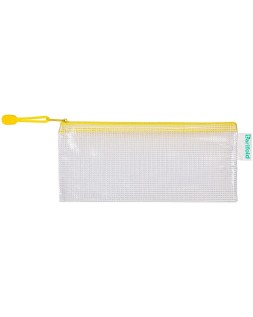 Bolsa multiusos q-connect malla din a6 apertura superior con cremallera amarillo