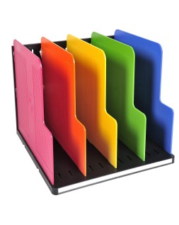 Organizador con 5 separadores. La solución flexible para organizar de manera vertical los documentos DIN A4+. Los separadores se pueden posicionar de manera perpendicular o de manera oblicua. Con una profundidad de 30 cm y con anchura de 29 cm, es compatible con todos los armarios de archivos. También se puede usar solo en una mesa. Medidas: 28,8 x 25,5 x 30 cm.