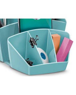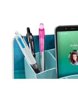 Cubilete multipot para lápices con propiedades antibacterianas. La adiciónde un agente bactericida de iones de plata elimina la presencia y el crec imiento de las bacterias de por vida. Generoso, compacto y elegante, le permitirá reunir y guardar todos sus accesorios de oficina. Capacidad: 40 bolígrafos + 5 rotuladores fluorescentes + 3 compartimentos a granel + 2 compartimentos laterales que pueden albergar smartphones, blocs de notas post-it... ¡Por fin todo al alcance de la mano!Incluye almohadillas antideslizantes. PS resistente, 100% reciclable. Medidas: 143 x 158 x 93 mm. Color: Blanco ártico.