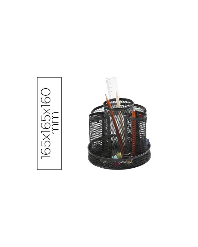 Organizador sobremesa q-connect kf17294 metalico giratorio rejilla negra 165x165x160 mm