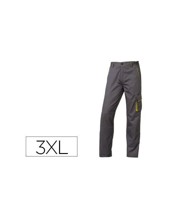 Pantalon de trabajo deltaplus cintura ajustable 5 bolsillos color gris verde talla 3xl