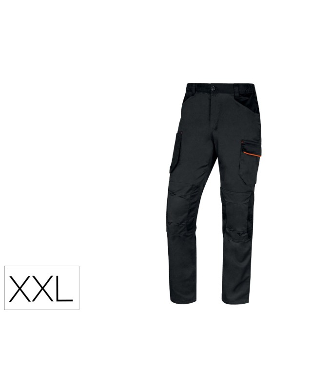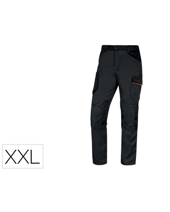 Pantalón corte adjusted Delta Plus. Prenda stretch. Cintura elástica en los laterales. Portapase identificador desmontable incluido. Triple costura.Rodillas preformadas. Bolsillos para rodilleras. 7 bolsillos, uno para me tro. Composición: 63% poliéster, 34% algodón, 3% elastano. Talla XXL. Color azul marino/naranja. HOMOLOGADO EN NORMA EN 14404: TIPO 2 NIVEL 1 EN ISO13688.