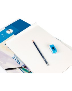 370 g/m². Papel de color blanco natural, ligeramente alisado y muy bien encolado. Ofrece dureza y regularidad en su superficie. Papel idóneo para acuarela escolar y témpera ya que permite una adecuada superposición y fijación de los colores y no desprende pelusilla por el uso del pincel. El minipack de 6 hojas.