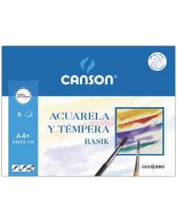 370 g/m². Papel de color blanco natural, ligeramente alisado y muy bien encolado. Ofrece dureza y regularidad en su superficie. Papel idóneo para acuarela escolar y témpera ya que permite una adecuada superposición y fijación de los colores y no desprende pelusilla por el uso del pincel. El minipack de 6 hojas.