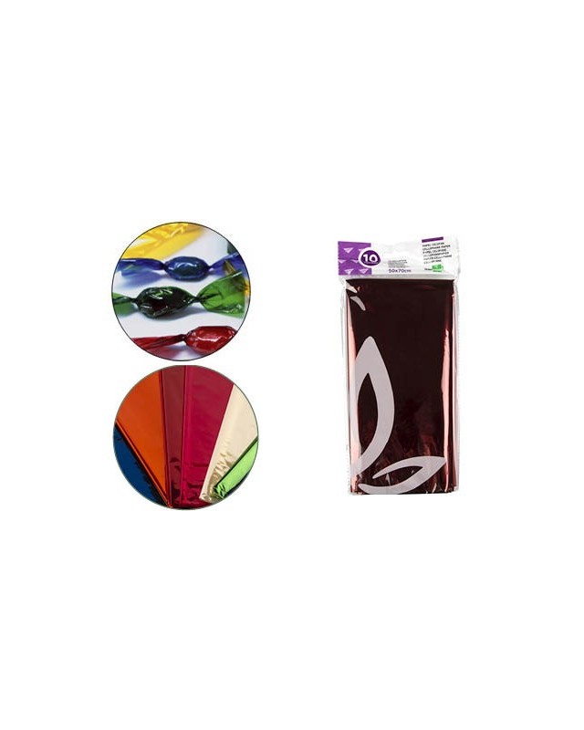 Papel celofan liderpapel 50x70 cm 22g/m2 bolsa de 10 hojas colores surtidos