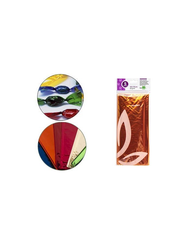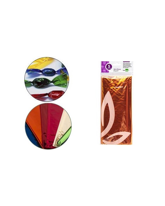 Papel celofan liderpapel 50x70 cm 22g/m2 bolsa de 5 hojas amarillo