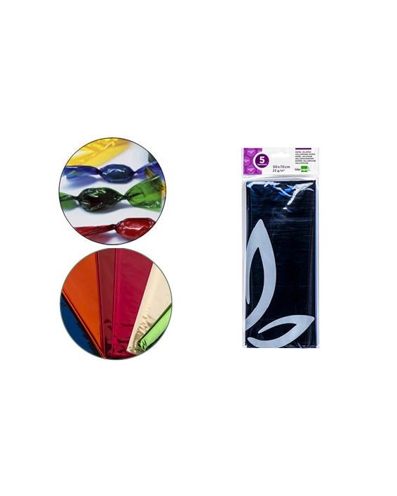 Papel celofan liderpapel 50x70 cm 22g/m2 bolsa de 5 hojas azul