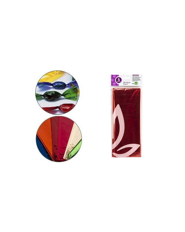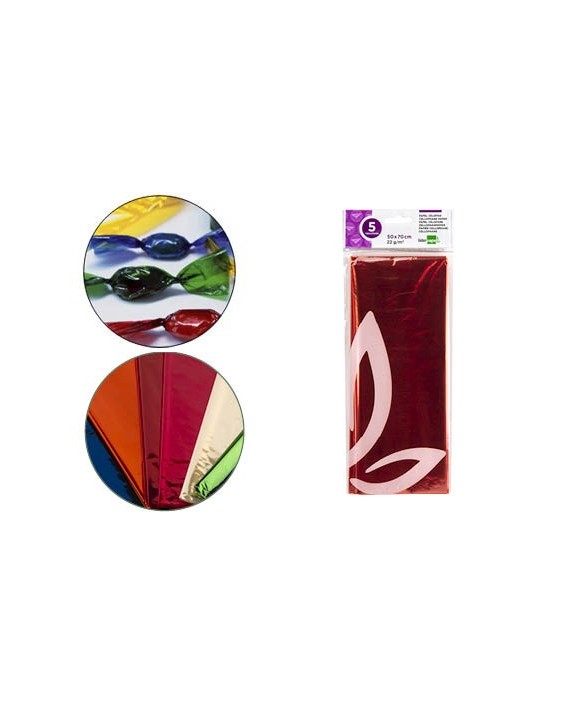 Papel celofan liderpapel 50x70 cm 22g/m2 bolsa de 5 hojas naranja