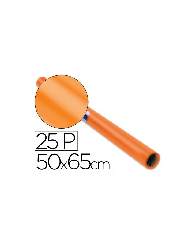 Papel charol naranja rollo 25 hojas de 50x65 cm