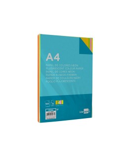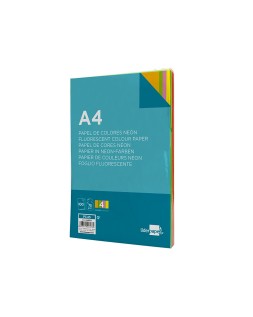 Papel color liderpapel a4 75gr neon 4 colores surtidos paquete de 100 hojas