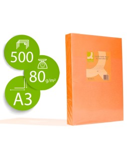 Papel color q-connect din a3 80gr naranja neon paquete de 500 hojas