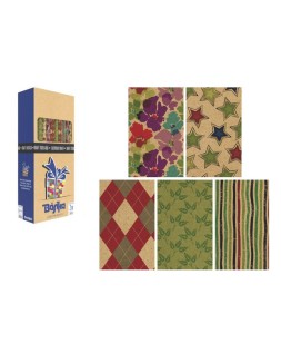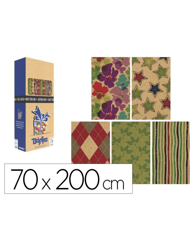 Papel de regalo basika kraft todo año rollo ancho 70 cm longitud 2 m diseños surtidos gramaje 50 gr