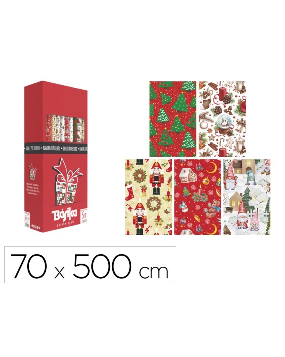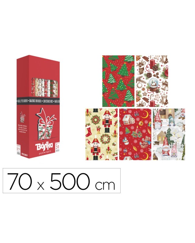 Papel de regalo basika navidad rollo ancho 70 cm longitud 5 m diseños surtidos gramaje 50 gr