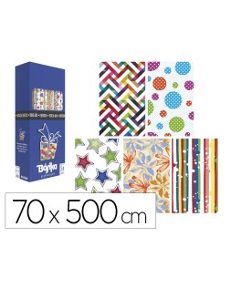 Papel de regalo basika todo año rollo ancho 70 cm longitud 5 m modelos surtidos gramaje 50 gr