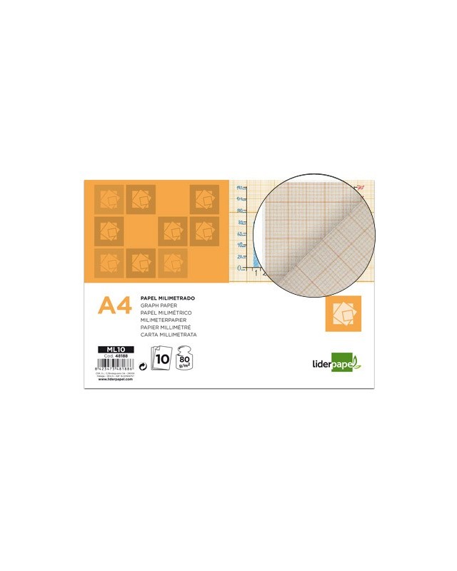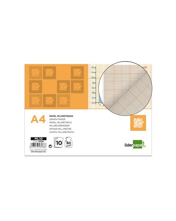 Papel dibujo liderpapel 210x297mm 80g/m2 milimetrado pack de 10 hojas