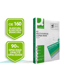 Papel de fotocopia de alta calidad, especialmente indicado para el uso en oficinas y copisterías. Uso a ambas caras. Admite gran volumen. Para impresora ink-jet o láser. No exponga el papel a condiciones de alta humedad nia altas temperaturas. Mantega el papel embalado hasta el momento de su ut ilización. Din A3. 80 g/m². Paquete de 500 hojas.