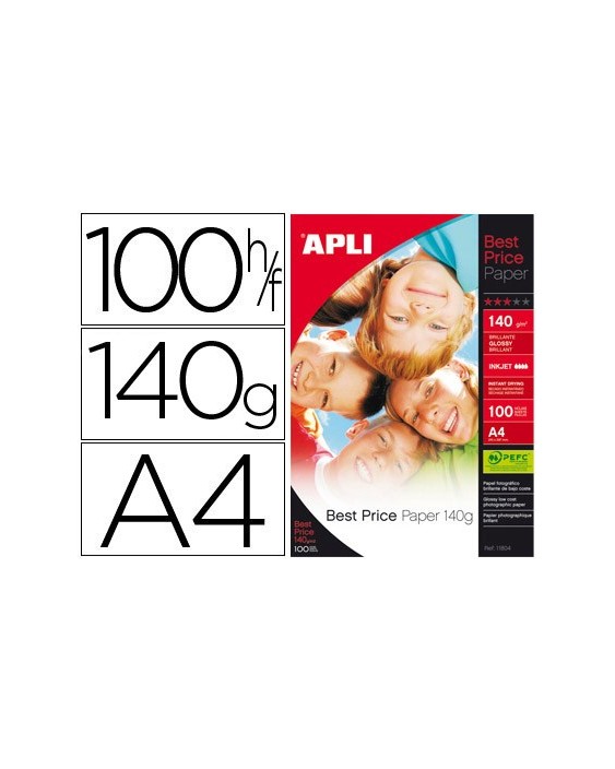 Papel fotografico apli glossy din a4 pack de 100 hojas 140 gr