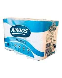 Papel higienico amoos 2 capas 100 mm diametro x 87 mm alto paquete de 12 rollos