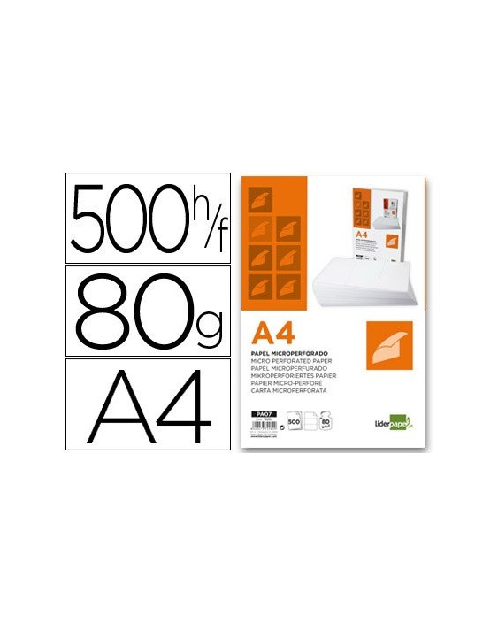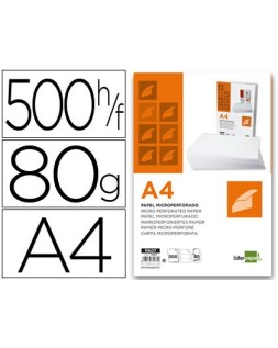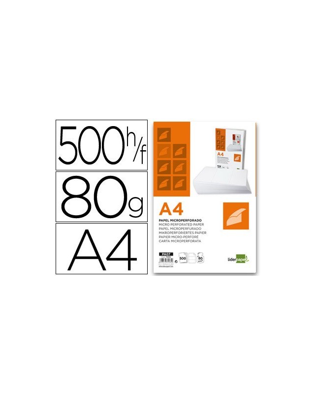 Papel liderpapel a4 80g/m2 liso microperforado en tres partes iguales paquete de 500 hojas