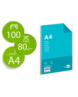 Papel liderpapel a4 80g/m2 liso paquete de 100 hojas